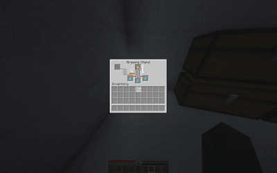 - Процесс: Поставьте стойку. В верхний слот (для ингредиента) поместите светокаменную пыль. В три нижних слота поставьте бутылки с жидкостью, полученной после варки.